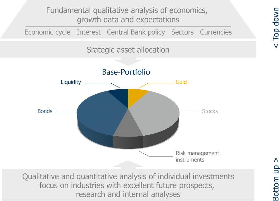 Your individual investment strategy is based on a clearly defined, consistent investment process that combines a top-down approach with a bottom-up approach. This investment process is based on an