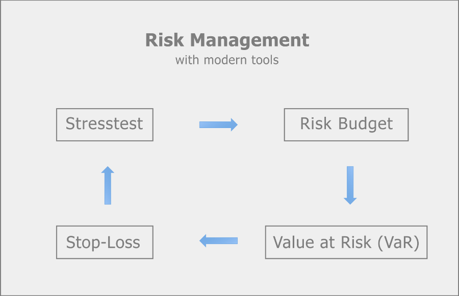 Risk control in your portfolio not only requires regular monitoring but also considerable experience and foresight. Therefore, our risk managers implement modern tools: risk budget, stress-test analysis, stop loss analysis and VaR analyses.